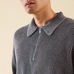 ACID WASH HALF ZIP KNIT PULLOVER