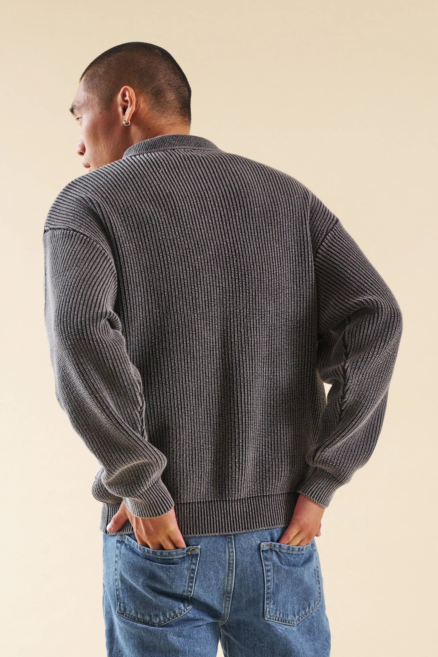 Made from 100% premium ribbed cotton with a custom pigment acid wash. Truly unique for knitwear. YKK zip. Heavyweight feel.