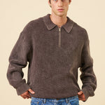 ACID WASH HALF ZIP KNIT PULLOVER