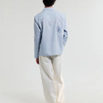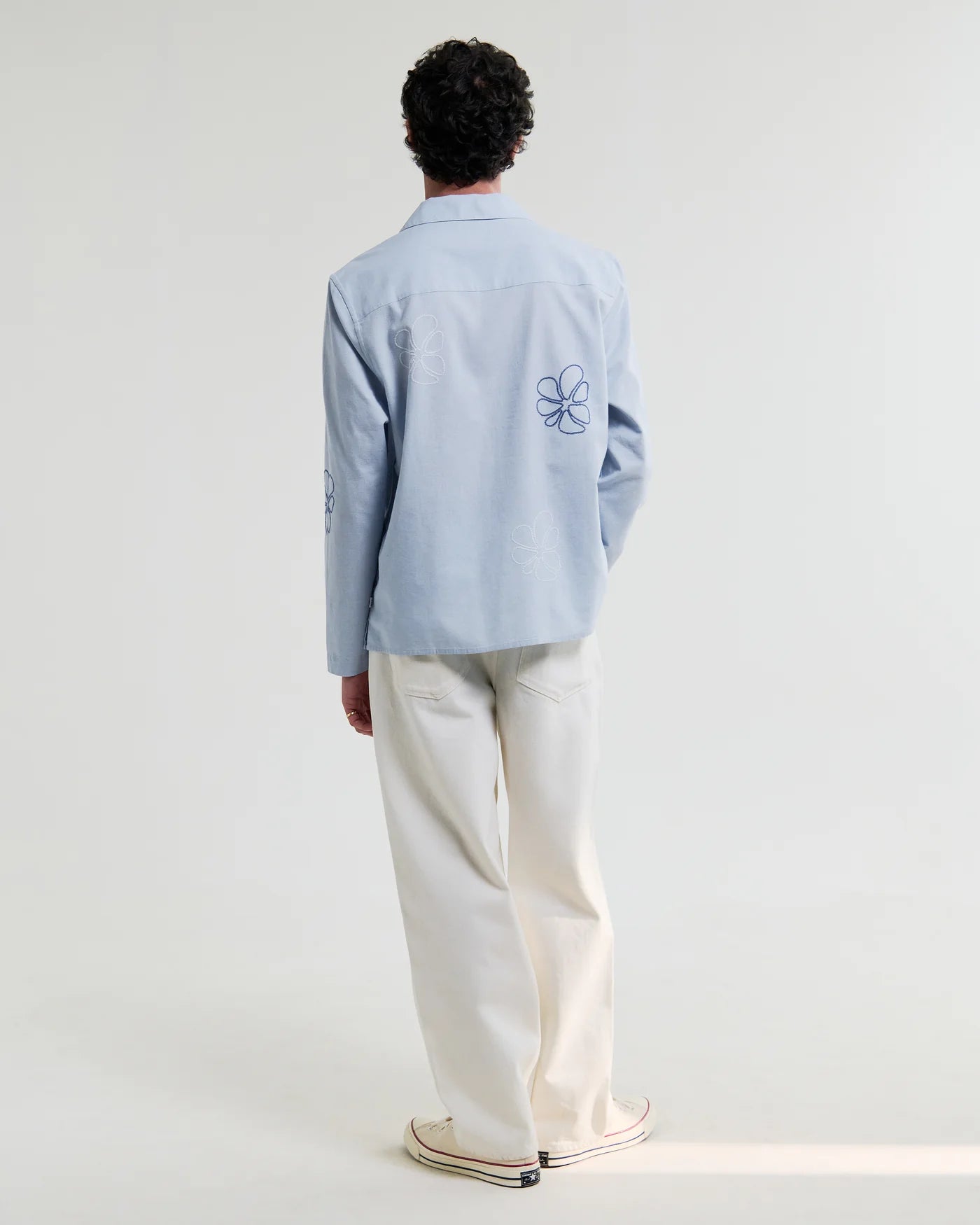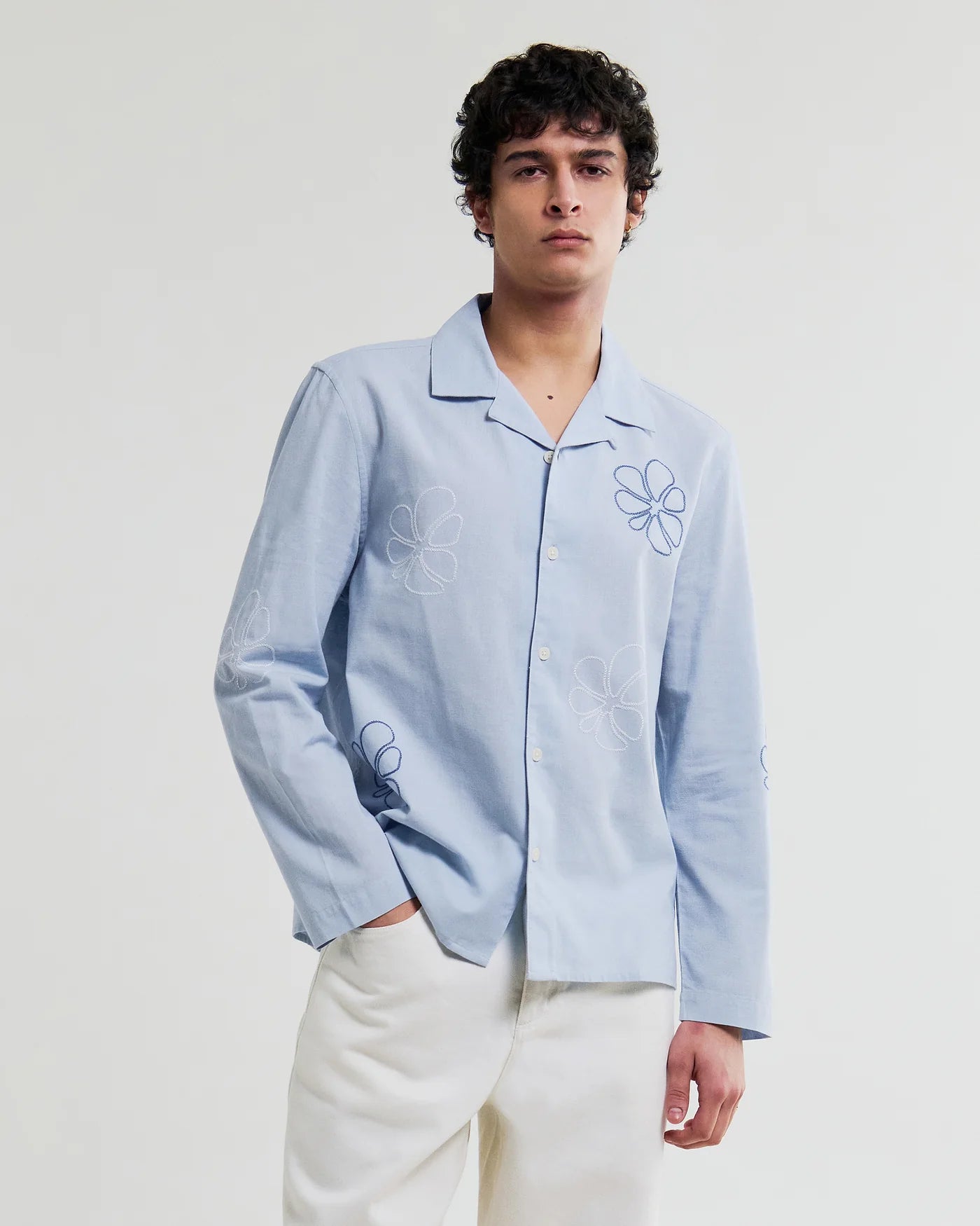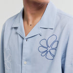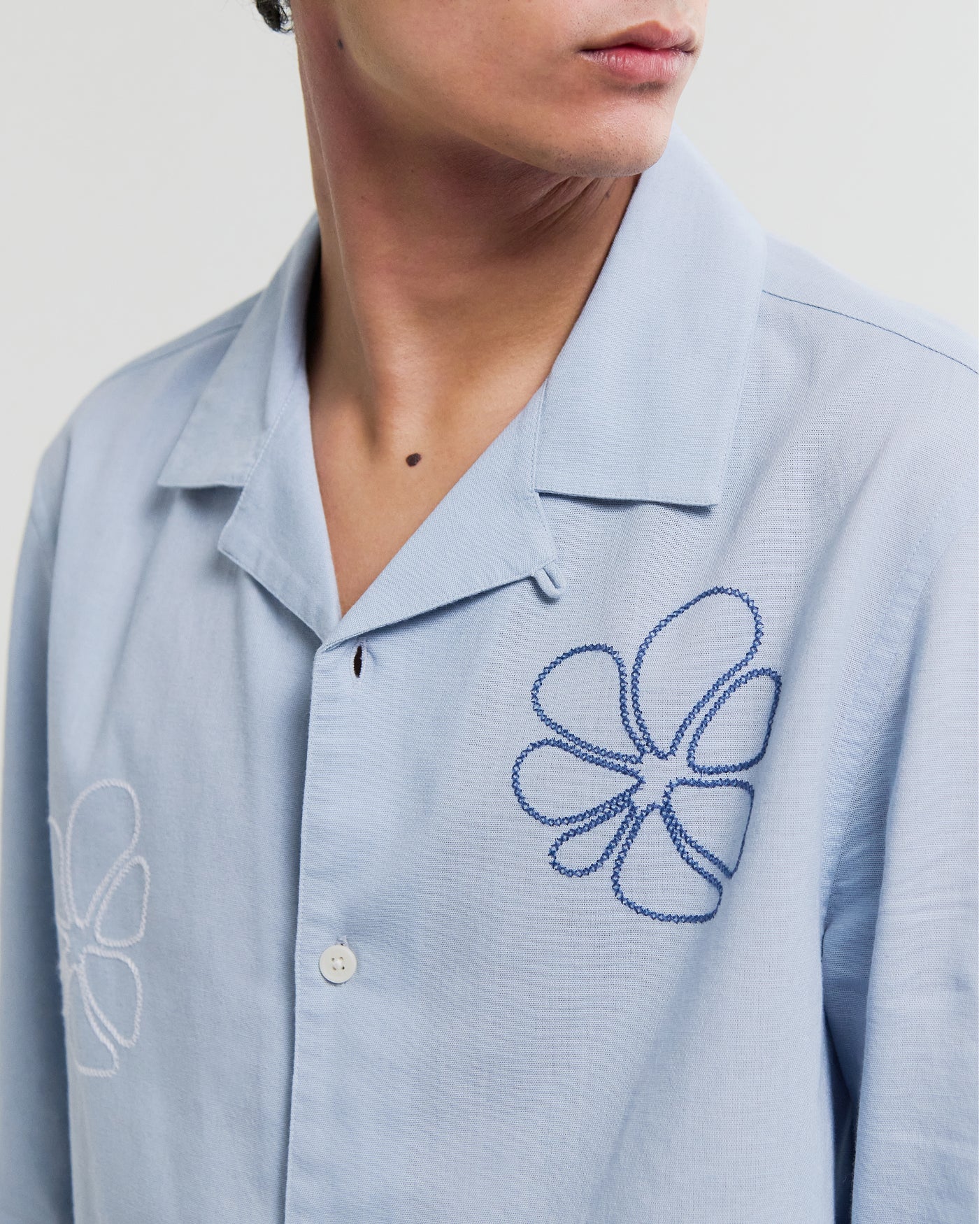 The Corey is crafted from a breathable cotton-flax blend with a soft, natural handle. It’s finished with a new seasonal embroidery technique, detailed with floral doodle design for subtle texture and depth.