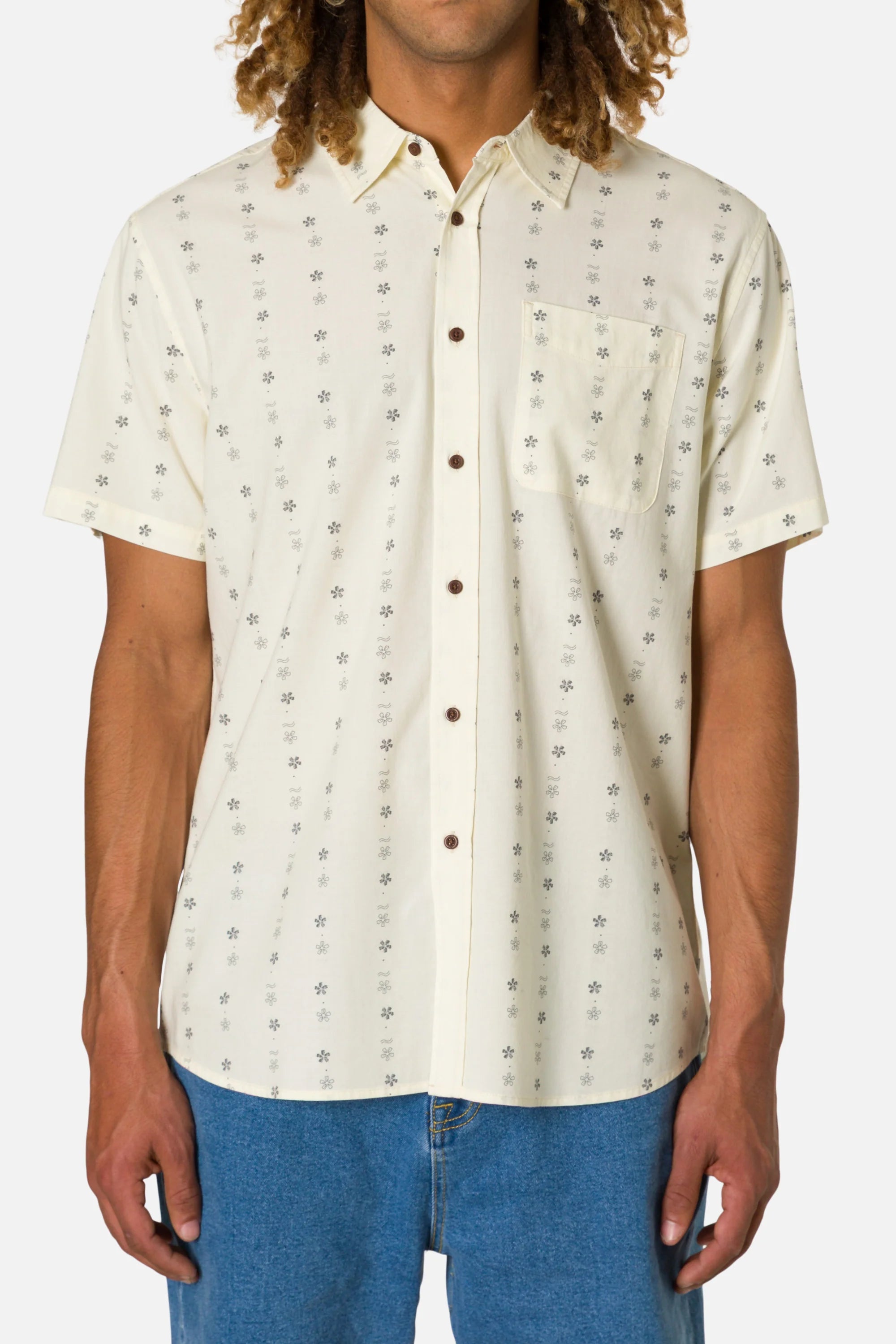 The Kona Wind Shirt uses a printed floral stripe on a soft cotton-blend, giving it color and character. Its light, cool fabric makes it an easy pick for warm days.
